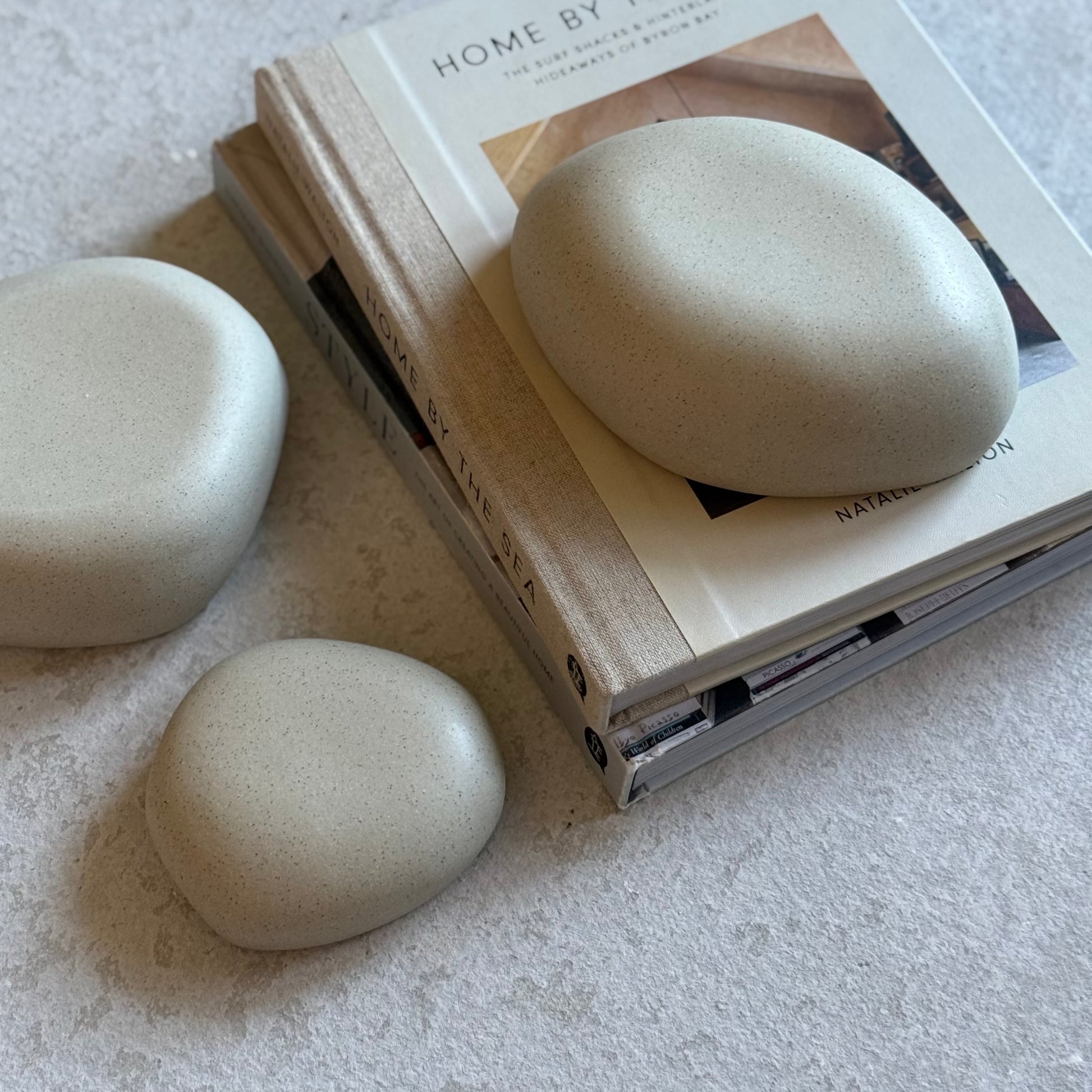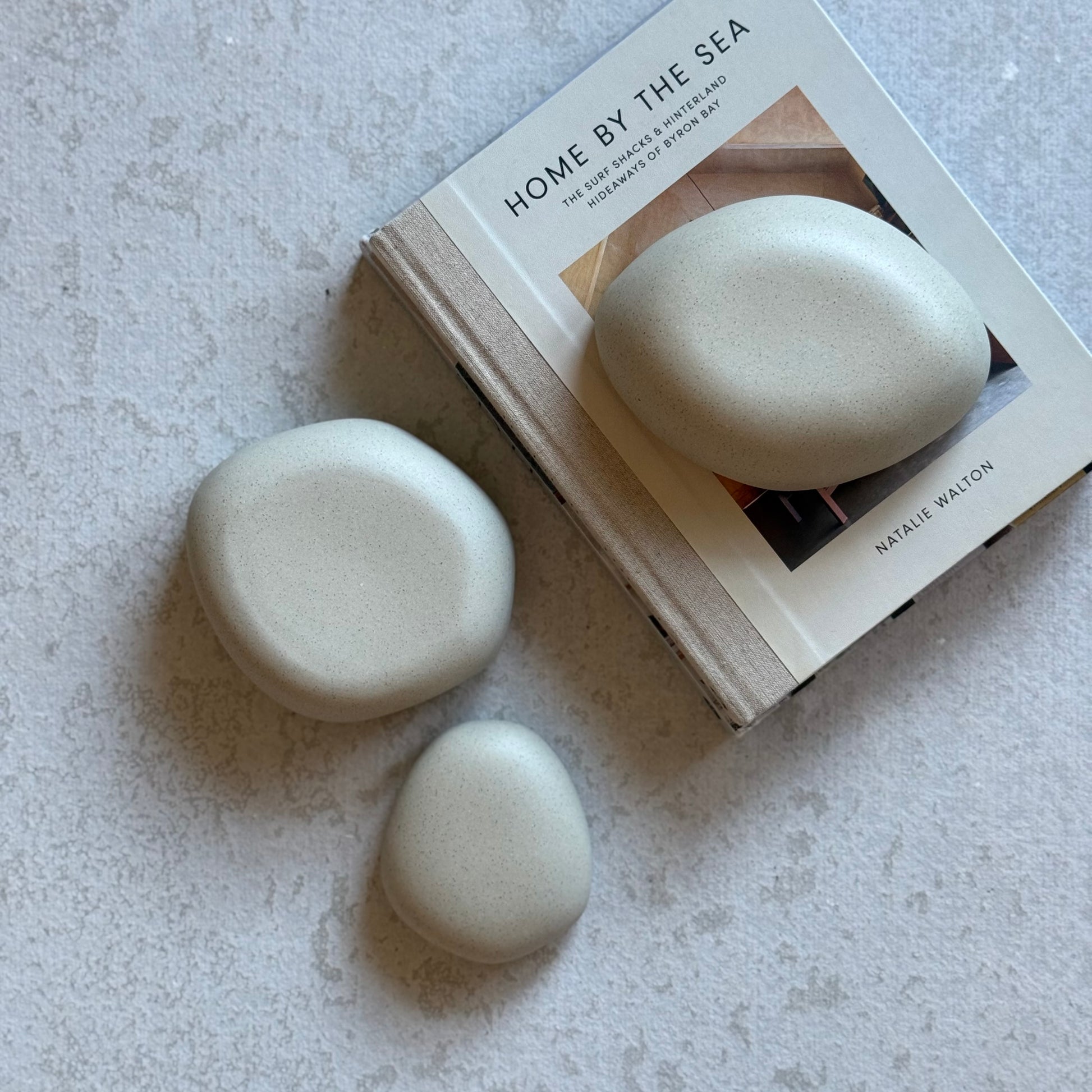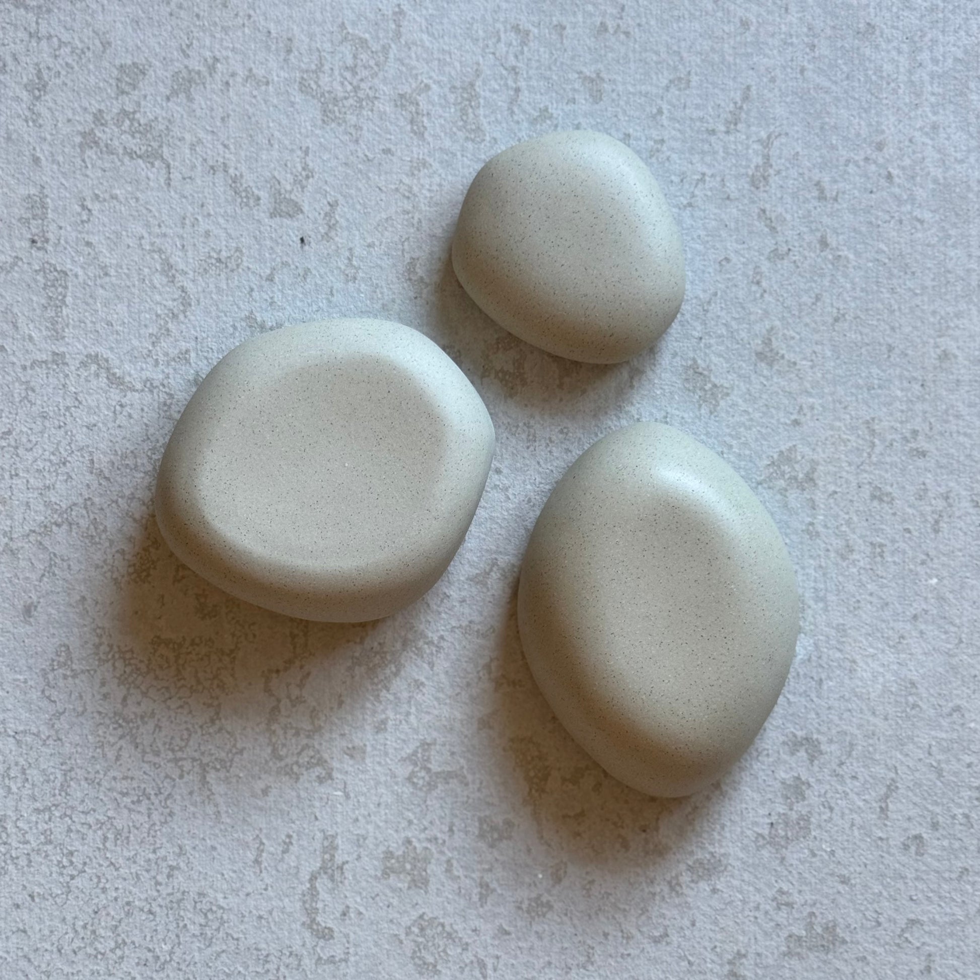 Purely sculptural, these hand-formed pieces echo the look and feel of natural rocks. Crafted from unglazed, polished speckled grey clay, they are smooth to the touch and visually grounding. A perfect accent for coffee tables, shelves, or atop your favorite book.